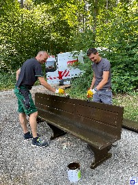 Der Personalrat der Stadtverwaltung organisierte im Juli einen Arbeitseinsatz zur Verschönerung der Stammberghütte. Viele fleißige Mitarbeiter*innen meldeten sich freiwillig zur freitäglichen Verschönerungsaktion. Die Hütte hat jetzt einen frischen Außenanstrich. Auch die Außenmöbel wurden gestrichen.