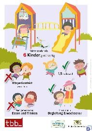 Die Benutzung von Spielplätzen durch Kinder ist nur unter Aufsicht der Eltern oder Betreuungspersonen zulässig, um auch unter infektionspräventiven Gesichtspunkten eine verantwortungsvolle Nutzung der Spielplätze durch die Kinder zu gewährleisten. Aus infektionshygienischer Sicht reduziert der Aufenthalt im Freien das Infektionsrisiko gegenüber dem in geschlossenen Räumen, weil die stärkere Luftbewegung einen deutlichen Verdünnungseffekt auf die ausgeatmeten potentiell infektiösen Tröpfchen bewirkt. Weitergehende Maßnahmen wie z.B. das Verbot der gemeinsamen Nutzung von Sandspielzeug sind nicht sinnvoll, da ein solcher Übertragungsweg nach derzeitigem Kenntnisstand keine wesentliche Relevanz besitzt.