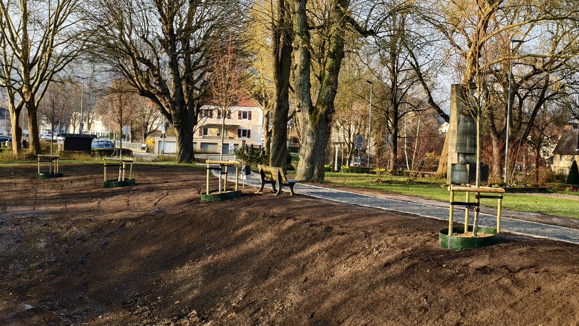 Die neu gepflanzten Bäume werden sich in den kommenden Jahren zu prägenden Elementen entwickeln und den Charakter des Kriegerdenkmals langfristig sichern. Gleichzeitig ist vorgesehen, die Fläche künftig in die geplante Umgestaltung des Stadteingangs Süd mit dem Tauberufer einzubinden.