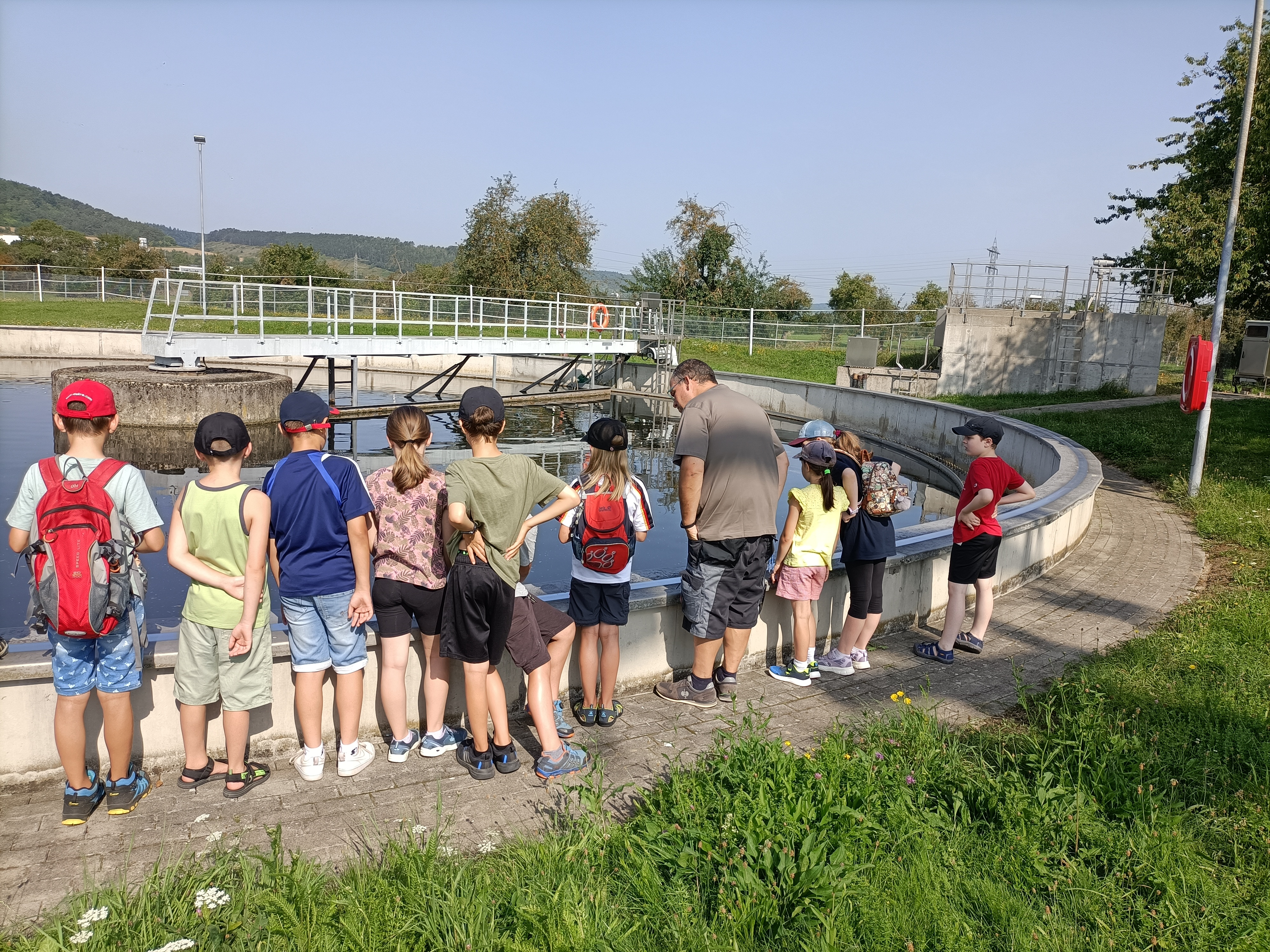 Ein weiteres spannendes Erlebnis bot der Besuch der städtischen Kläranlage. Dort erfuhren die Kinder, wie Abwasser gereinigt wird und warum sauberes Wasser so wichtig ist. Bei einer Führung durch die Anlage konnten sie die einzelnen Reinigungsschritte nachvollziehen und bekamen so einen besonderen Einblick hinter die Kulissen.