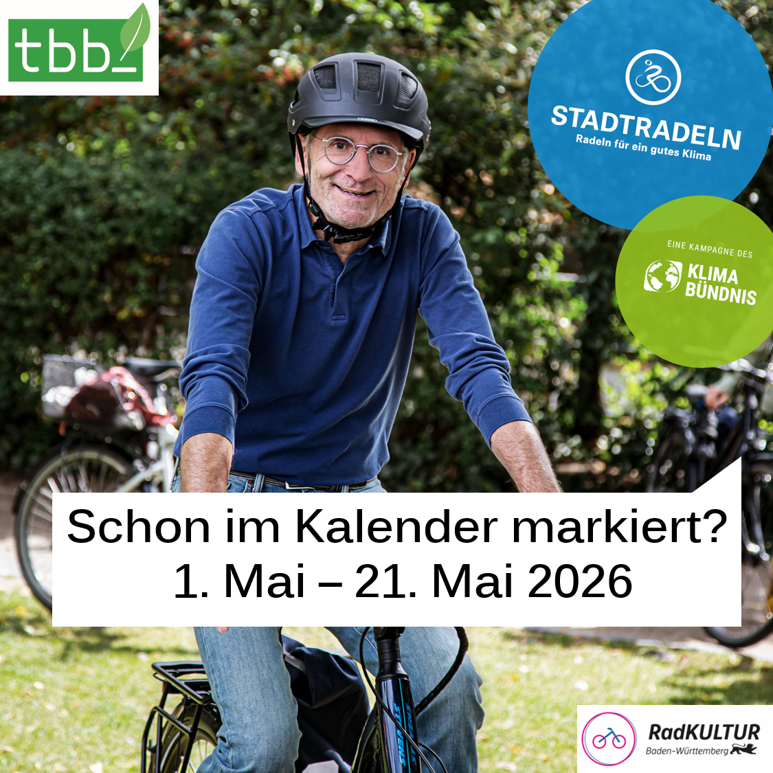 Die internationale Fahrradkampagne Stadtradeln findet auch 2026 in Tauberbischofsheim statt. Im Aktionszeitraum vom 1. Mai bis zum 21. Mai 2026 gilt es, möglichst viele Wege mit dem Fahrrad zurückzulegen und diese über die Stadtradeln-App zu tracken.