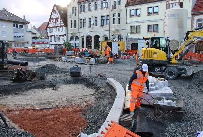 Eine Woche früher als geplant geht die Umgestaltung des Sonnenplatzes in die nächste Bauphase. Am Samstag, 23. Oktober können die Schmiederstraße und die Bahnhofstraße wieder in beide Richtungen befahren werden. Auch wenn der Sonnenplatz gesperrt ist, bleiben die Fußwege zu den Anliegern weiterhin möglich.