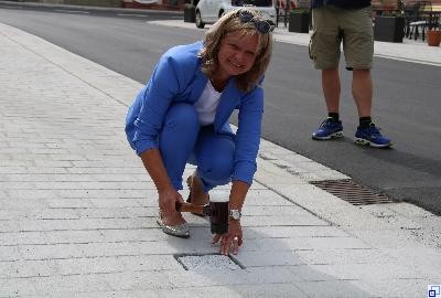 der Fußgängerzone“ abgeschlossen. Bürgermeisterin Anette Schmidt verbaute persönlich den letzten Pflasterstein auf dem neugestalteten Platz. Dabei waren die beteiligten städtischen Mitarbeiter*innen, Vertreter*innen der projektbeteiligten Firmen, die Spender