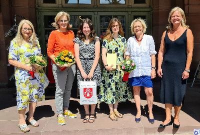 Bürgermeisterin Anette Schmidt lud Célia in das Rathaus ein und überreichte ihr ein Gastgeschenk. Mit dabei waren auch Gastmutter Simone Werner und Marguerite Sigwalt-Fischer vom Partnerschafts-Komitee Tauberbischofsheim. Marguerite Sigwalt-Fischer kümmert sich seit vielen Jahren um den Austausch von jungen Menschen aus den Partnerstädten. In Würdigung ihrer Verdienste um den Schüleraustausch war auch Ulrike Endres eingeladen. Ulrike Endres hat französisch am Matthias-Grünewald-Gymnasium unterrichtet und ist Ende Juli in den Ruhestand verabschiedet worden. Aus diesem Grund war Mireille Clement aus der Partnerstadt angereist, die Deutsch-Lehrerin am Gymnasium in Vitry-le-François ist. Die beiden Lehrerinnen haben über 20 Jahre den Schüleraustausch zwischen den Partnerstädten an den Gymnasien organisiert und begleitet.