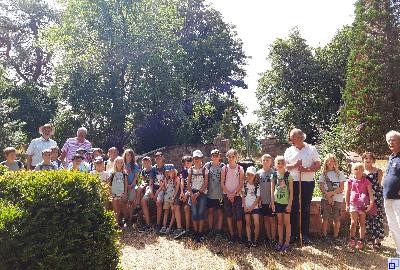 Hans-Georg von Mallinckrodt machte den Burgbesuch zu einem Ereignis und alle waren sehr interessiert. Das betraf natürlich besonders die Ritter, ihre Rüstungen und Waffen, die viele der Teilnehmer – insbesondere die Mädchen - unbedingt auch einmal anziehen und tragen wollten. Großes Interesse galt am Rande den Pfadfindern, die aktuell unter der Burg in Zelten wohnen und die Kinder bei den heißen Temperaturen mit dem Wasserschlauch abkühlen durften. So hatten alle Kinder reichlich Spaß bei dem Ereignis. Mit einem Rundgang durch den weitläufigen botanischen Garten endete dieser geschichtsträchtige Ausflug.
