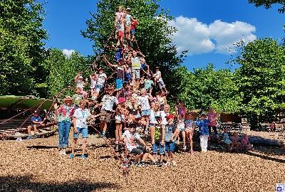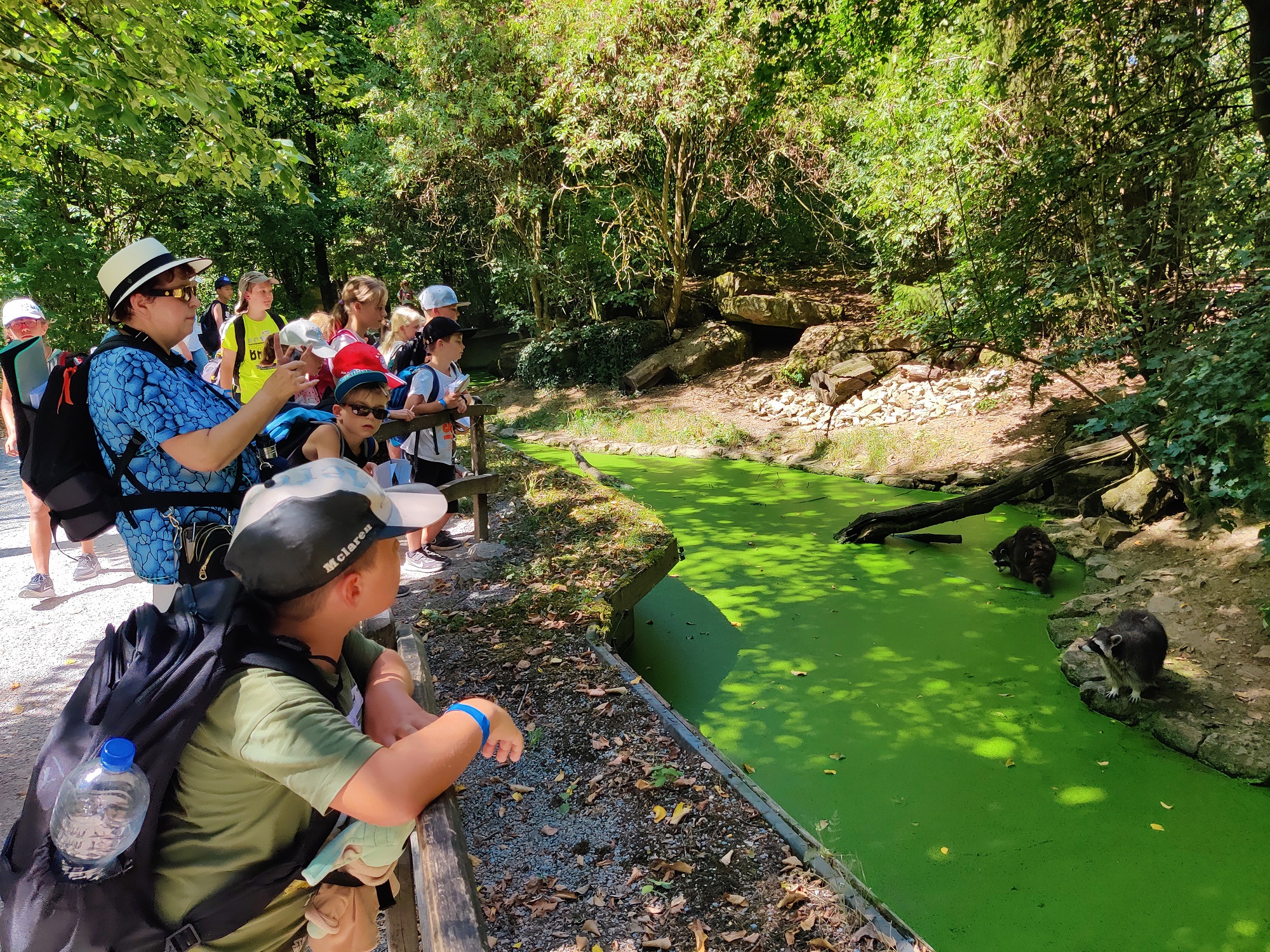 Im Verlauf des Tages galt es an verschiedenen Tiergehegen Quizaufgaben zu lösen. Dafür wurden Tiere beobachtet und Informationen auf Schautafeln gesucht. Wie jedes Jahr waren die Kinder mit Feuereifer bei der Sache und durften natürlich nebenher Tiere mit Futter aus dem Tierpark füttern. Bei der Mittagspause am Spielplatz beim Streichelzoo, wo die Kinder viel Spaß beim Streicheln und Füttern von Schafen, Ziegen und Co. hatten, gab es zur Stärkung noch ein Eis, bevor der zweite Teil des Rundgangs begann und die letzten Aufgaben gelöst wurden. Alle Gruppen verdienten sich so einen kleinen Preis. Die sehr hochsommerlichen Temperaturen von bis zu 38 °C hielten Kinder und Betreuer nicht davon ab, schließlich noch einen kleinen Wettbewerb auf dem Spielplatz am Eingang zu veranstalten: Fünf Mitglieder jeder Gruppe absolvierten einen Eierlauf auf Zeit mit einigen Hindernissen, natürlich unter lauten Anfeuerungsrufen! Die Gewinnergruppe unter den Kindern schlug dabei sogar die Betreuergruppe und erhielt einen Sonderpreis in Form eines Eisgutscheins. Da gab es nochmals leuchtende Augen! Es blieb noch Zeit, um sich in der Koboldburg zu vergnügen, bevor sich die gesamte Gruppe wieder am Bus versammelte und die Heimfahrt nach Tauberbischofsheim antrat. Gegen 16.45 Uhr konnten die Eltern ihre Kinder nach einem erlebnisreichen Tag wieder in Empfang nehmen.