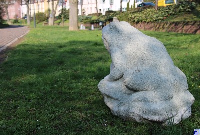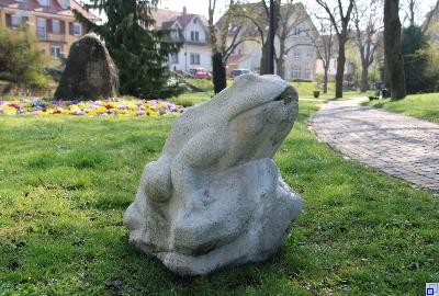 Die Krötenfigur, die früher den Krötenbrunnen am Schlossareal zierte, hat nun eine neue Heimat gefunden. Seit Anfang April begrüßt sie die Besucher im Froschgraben. Die Figur besteht aus Gussbeton und war früher zugleich auch Wasser-Speier.