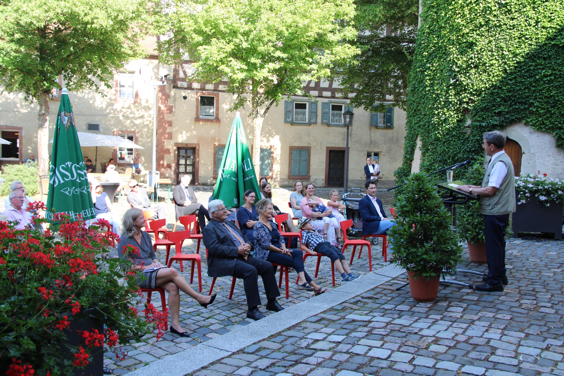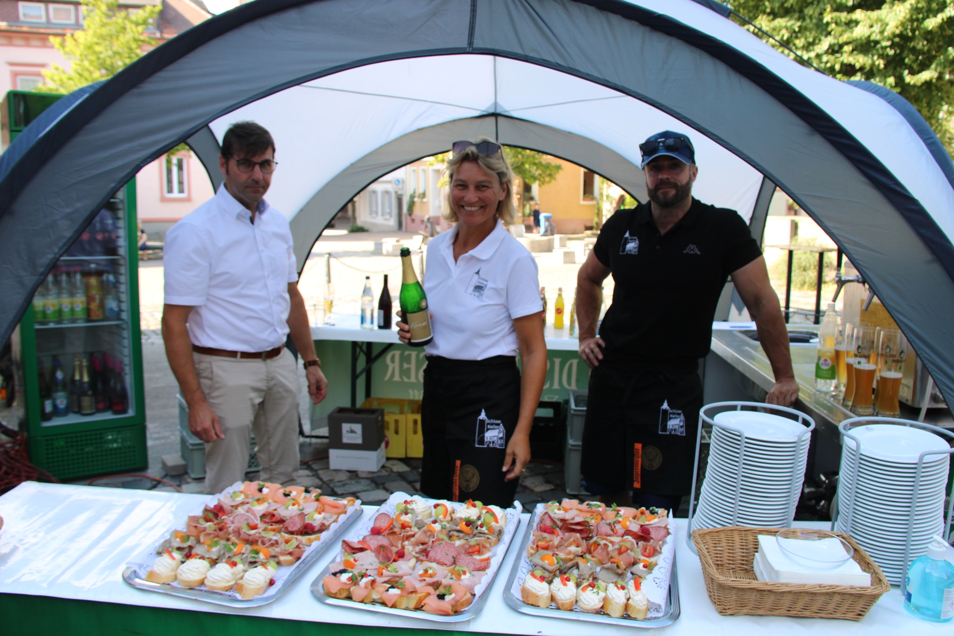 Beim anschließenden Stehempfang gab es dann Gelegenheit zum persönlichen Austausch. Für das leibliche Wohl sorgte dabei das Kellergeister-Team, das damit auch ihren ersten gastronomischen Einsatz als neue Pächter vom Schlosskeller hatte.