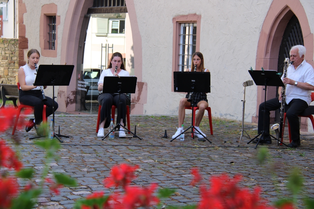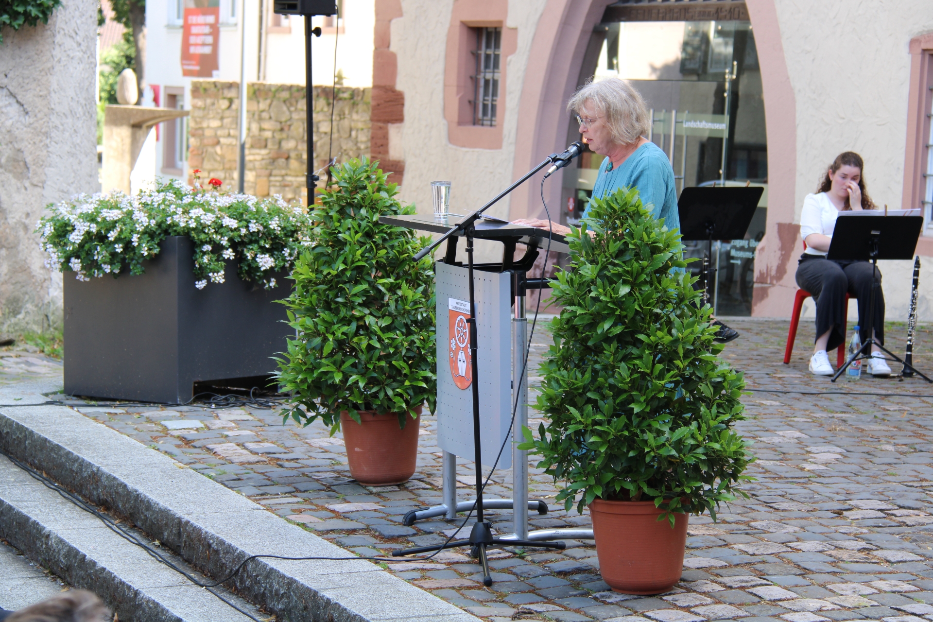 Anlässlich der Verleihung hatten sich nun neben Bürgermeisterin Anette Schmidt, die Familie von Gernot Wamser, Vertreter*innen des Gemeinderats, Mitglieder der Tauberfränkischen Heimatfreunde, verschiedene Weggefährten von Gernot Wamser sowie Bürgermeister a.D. Wolfgang Vockel auf dem Schlossplatz eingefunden. Bei bestem Wetter umrahmte das Klarinettenensemble der Richard-Trunk-Musikschule unter Leitung von Christoph Lewandowski die Feierstunde.