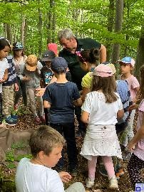 Im Rahmen einer Waldprojektwoche wurde das grüne Klassenzimmer eingeweiht. Hans-Peter Scheifele und seine Assistentin Frau Hack hatten für die einzelnen Jahrgangsstufen passende waldpädagogische Angebote vorbereitet. Die Viertklässler beschäftigten sich mit dem Aufbau des Waldbodens und dem Schutz des Waldes. Am Tag der Drittklässler standen die Waldtiere im Mittelpunkt. Anhand lebensgroßer Figuren erklärte Hans-Peter Scheifele den Kindern anschaulich, wie sich die Tiere in ihrem Lebensraum Wald tarnen. Eifrig sammelten die Schüler*innen der zweiten Jahrgangsstufe Blätter der umstehenden Bäume und staunten, wie viele verschiedene Baumarten in der Umgebung zu finden waren. Die Erstklässler lernten den Wald mit allen Sinnen an verschiedenen Stationen kennen. Die Vorklasse 1F legte wunderschöne Waldmandalas aus Naturmaterialien.
