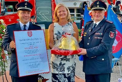 Zusammen mit Antje Buhl, Feuerwehrkameradin der Abteilung Stadt und Alexa Müssig vom Deutschen Roten Kreuz, trug Michael Noe die „Gedanken eines Feuerwehrmannes während eines Einsatzes vor. Zum Abschluss seiner emotionalen Rede sagte er: „Ich bin stolz Kommandant dieser Feuerwehr gewesen zu sein!“ Was folgte waren Standing-Ovations der 300 Gäste für Michael Noe. Als Anerkennung für seine geleistete Arbeit, erhielt Michael Noe eine Holz-Gedenktafel und einen goldenen Helm als Geschenk.